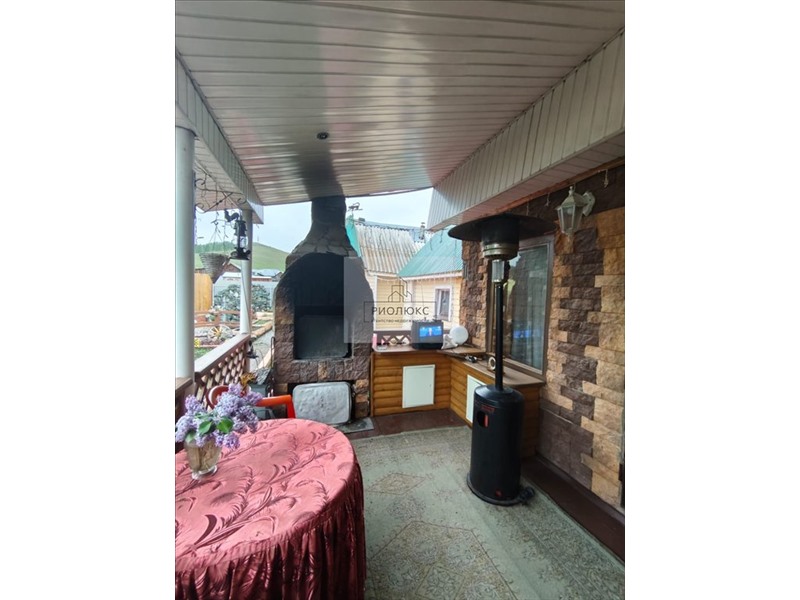 Рядом с домом расположена большая веранда с мангальной зоной, стильной подсветкой и большим столом — идеальное место для приёма гостей и семейных ужинов на свежем воздухе.